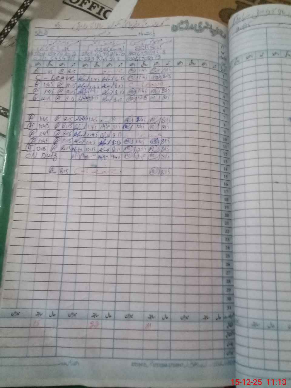 | CNIC | Full Name | Designation | R/C | Absence During Last Calender Month |