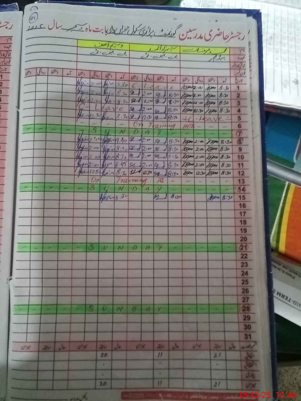 | CNIC | Full Name | Designation | R/C | Absence During Last Calender Month |