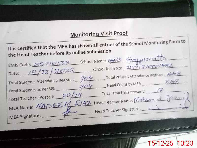 | EMIS Code: 35210133 | Name of School: GHS GAJU MATTA | |||
