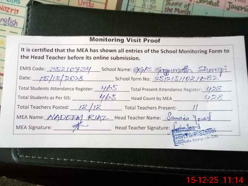 | EMIS Code: 35210734 | Name of School: GGPS GAJU MATTA SHARQI | |||