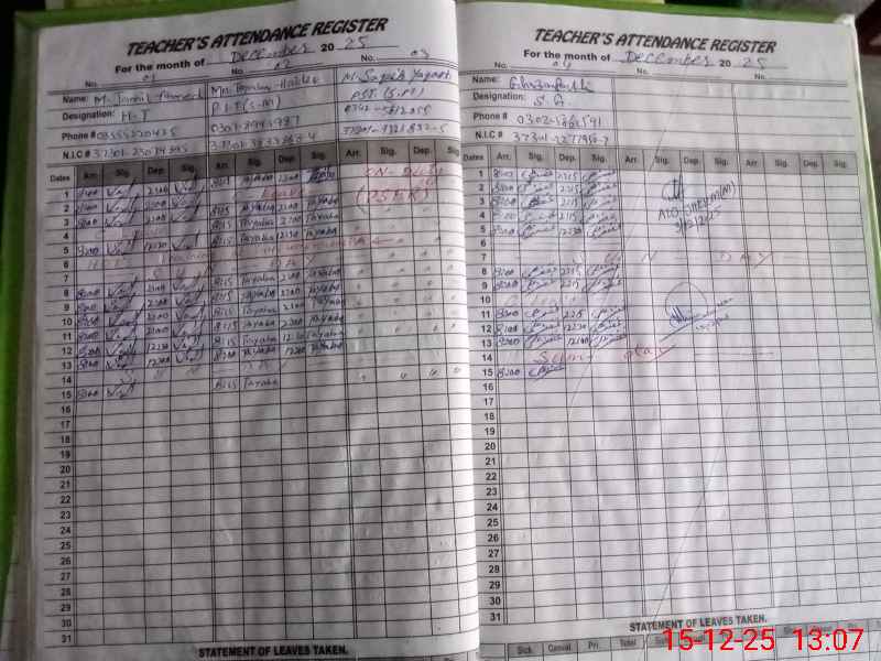 | Name: M.**** AH**** Designation: (School Headmaster's/Headmistress's) PST Phone/Cell Number: 03**** |