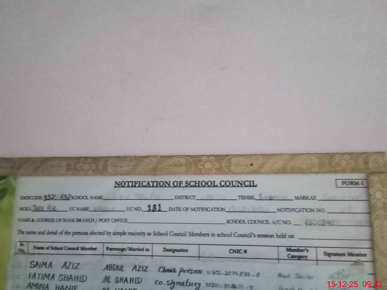 | Name: SA**** AZ**** Designation: (School Headmaster's/Headmistress's) EST Phone/Cell Number: 03**** |
