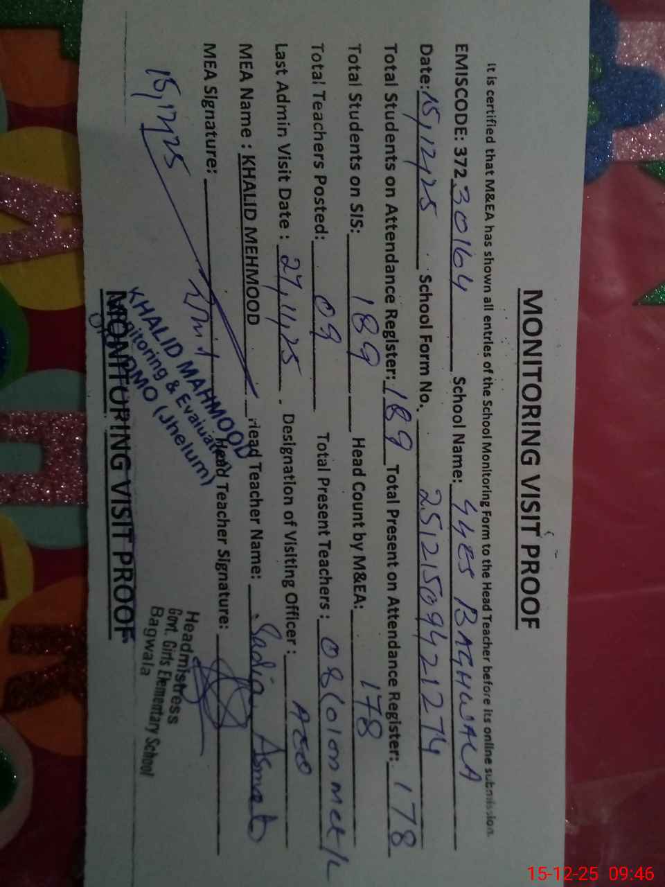 | EMIS Code: 37230164 | Name of School: GGES BAGHWALA | |||