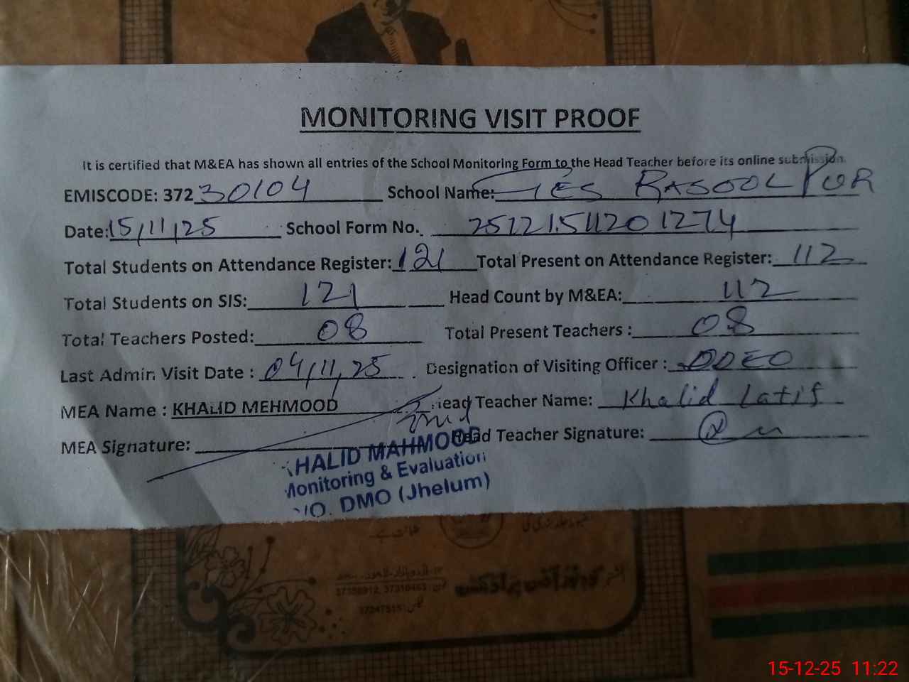 | EMIS Code: 37230104 | Name of School: GES RASOOL PUR | |||