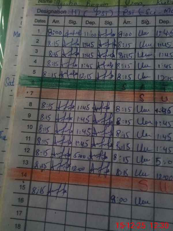 | CNIC | Full Name | Designation | R/C | Absence During Last Calender Month |