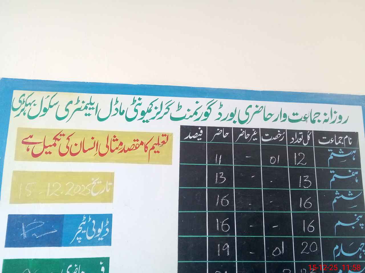 | District: CHAKWAL | Tehsil: CHAKWAL | Markaz: MIAN MAIR-FEMALE | Level: Middle | |