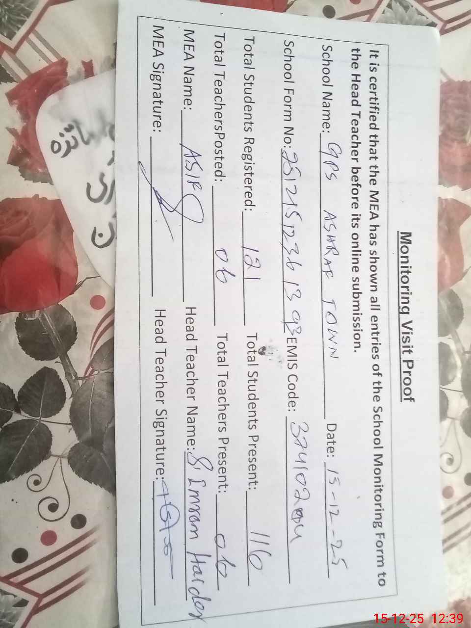 | EMIS Code: 37410204 | Name of School: GPS ASHRAF TOWN 3-MARLA SCHEME | |||