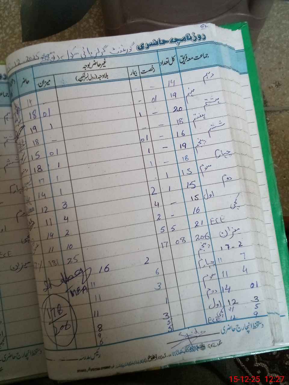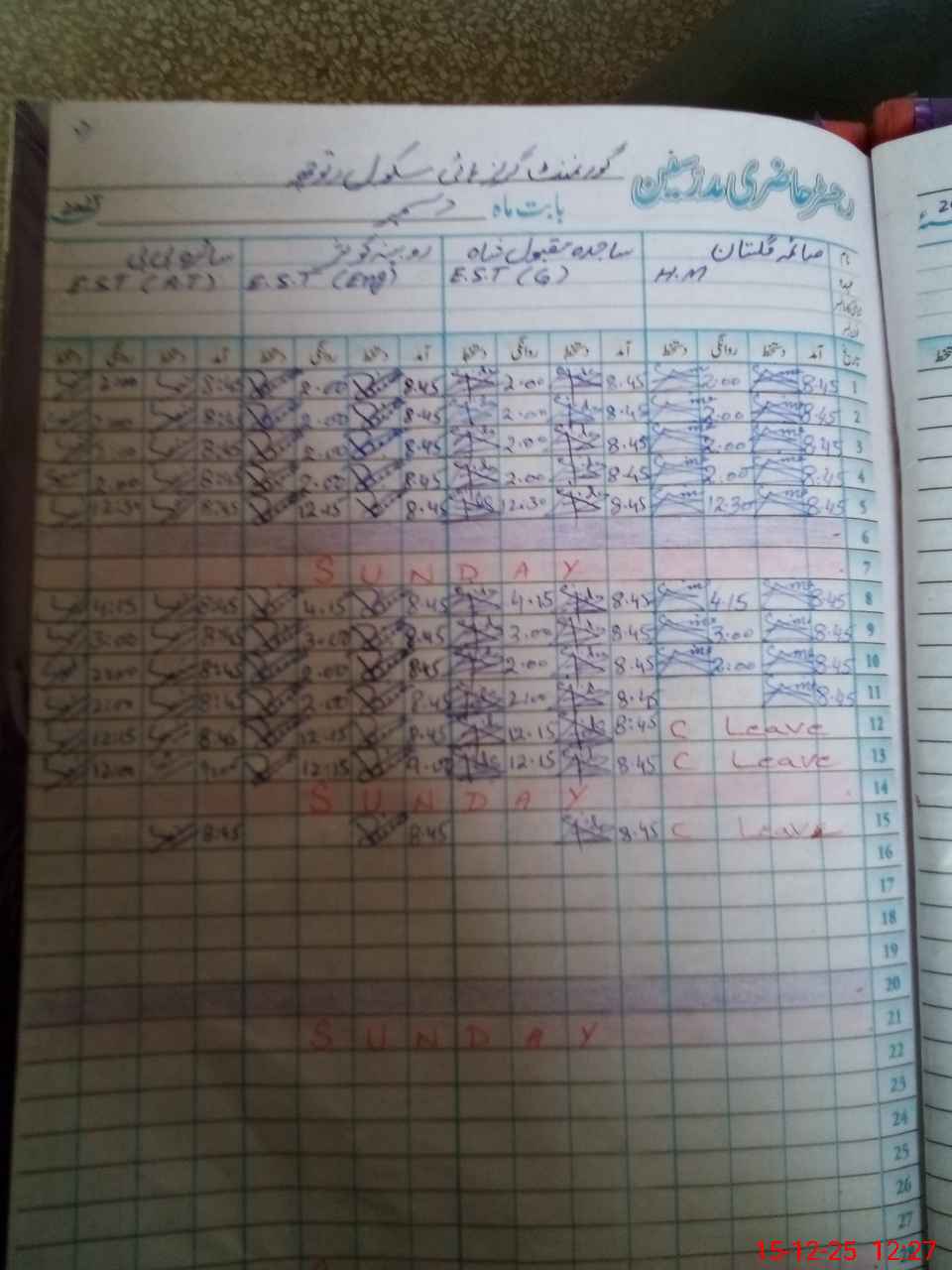 | Remarks (Use Separate Page if Required): Sir no admin visit in this school headmistress Saima Gulistan. shown on C leave on register but her leave was not approved | |||||
