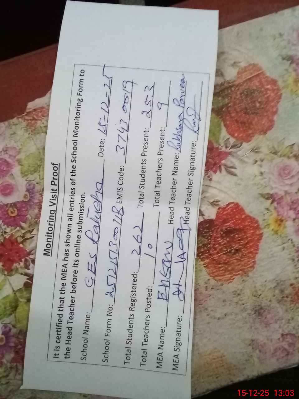 | EMIS Code: 37430019 | Name of School: GES RATUCHHA | |||
