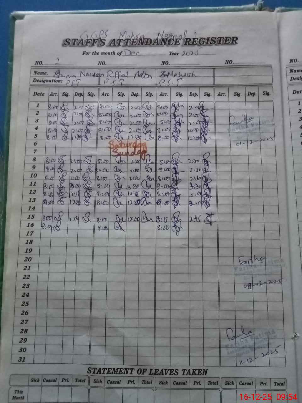 | Monitoring Date: 16-12-2025 | Start Time: 16-12-2025 09:40 AM | End Time: 16-12-2025 10:00 AM | Name of MEA: SH**** AK**** | |