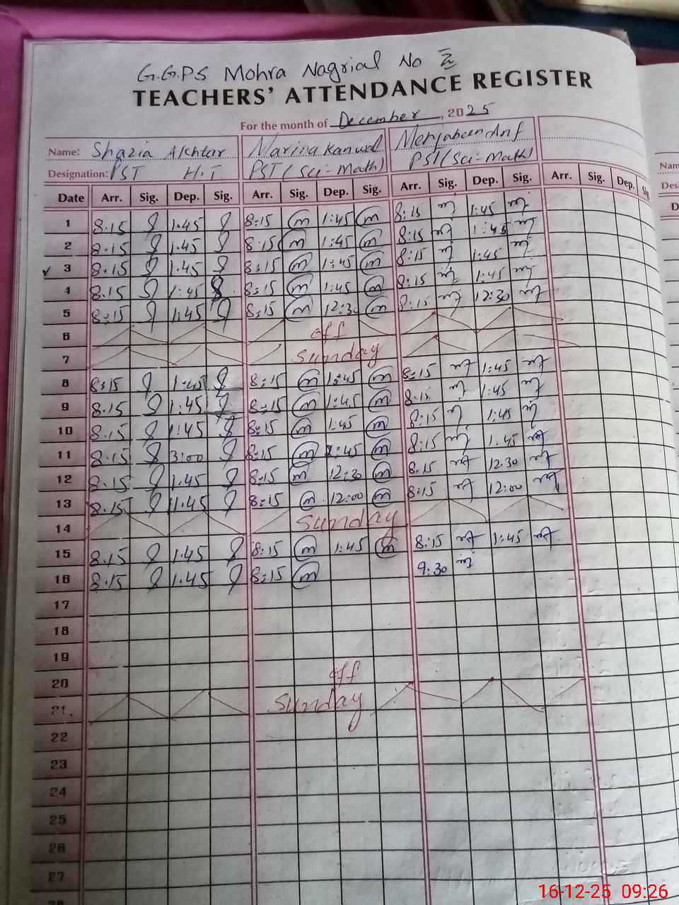 | Monitoring Date: 16-12-2025 | Start Time: 16-12-2025 09:13 AM | End Time: 16-12-2025 09:33 AM | Name of MEA: SH**** AK**** | |