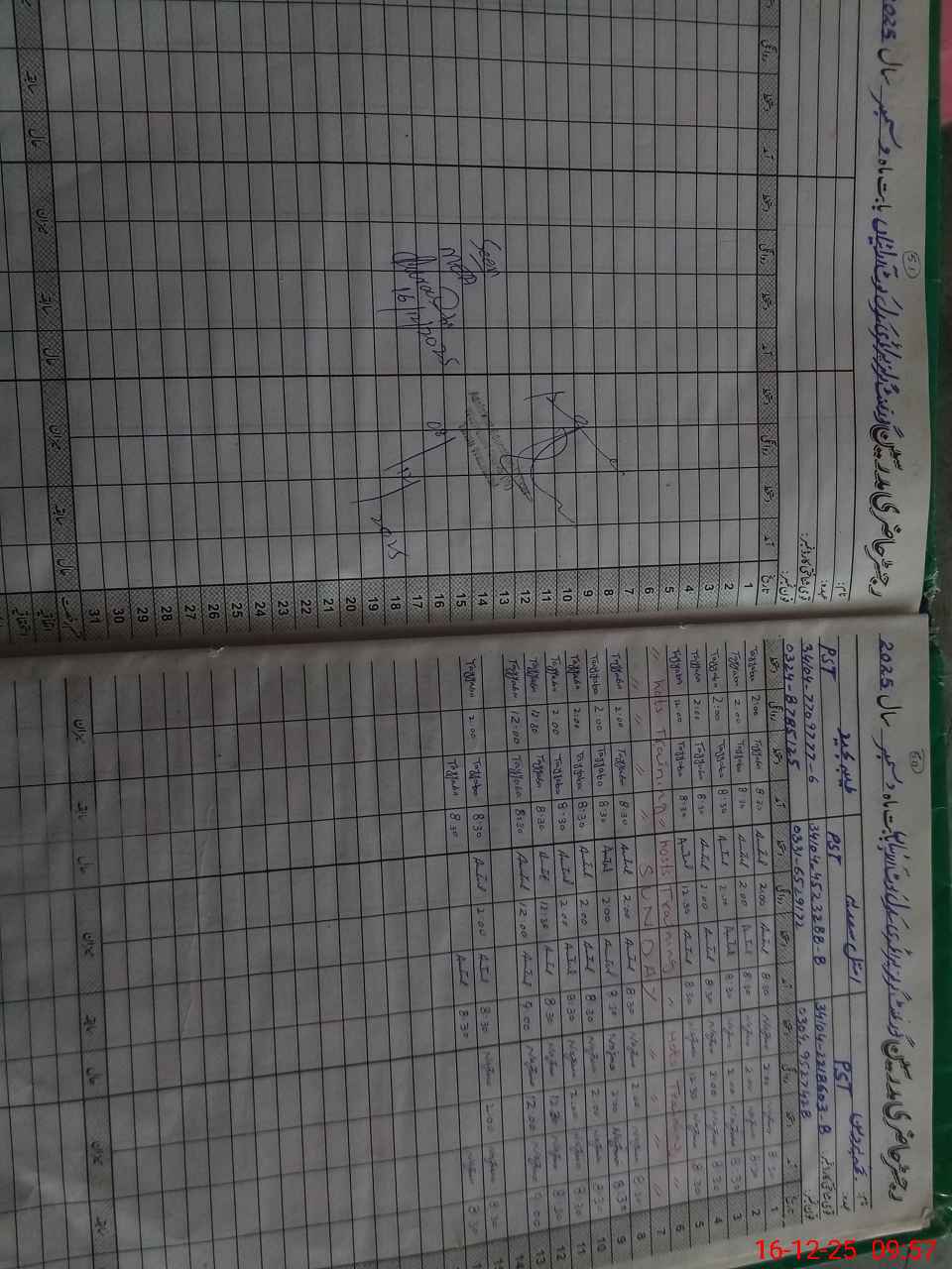 | CNIC | Full Name | Designation | R/C | Absence during last cal. month |