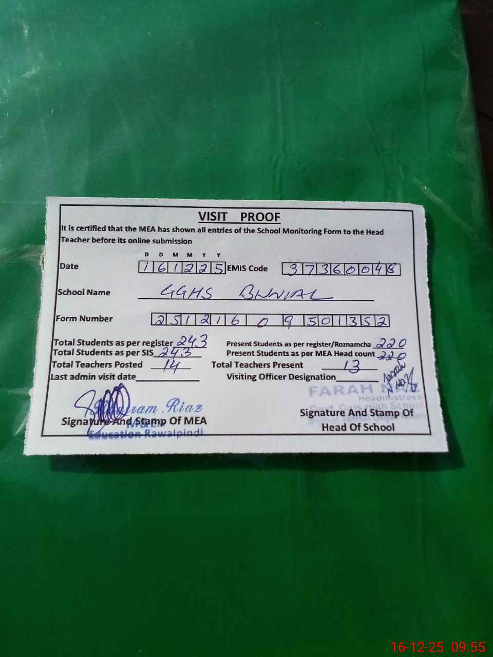 | EMIS Code: 37360048 | Name of School: GGHS BIJNIAL | |||