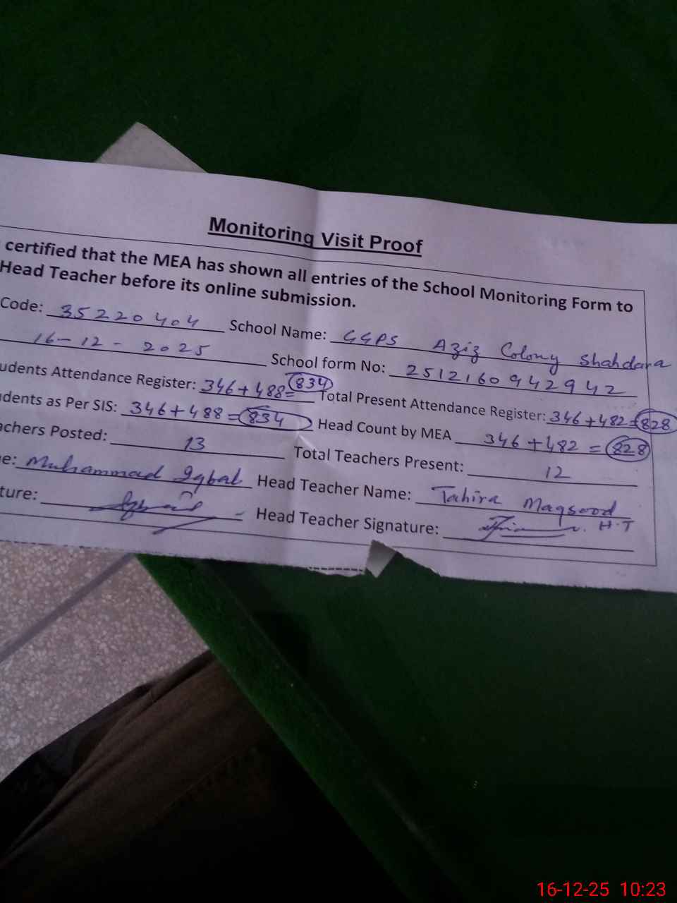 | EMIS Code: 35220404 | Name of School: GGPS AZIZ COLONY SHAHDARA | |||