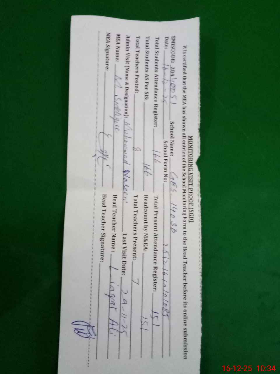 | Certified that this School was Inspected by the Undersigned MEA/DMO Today and the Information Stated Above is as Per Record. | |||||