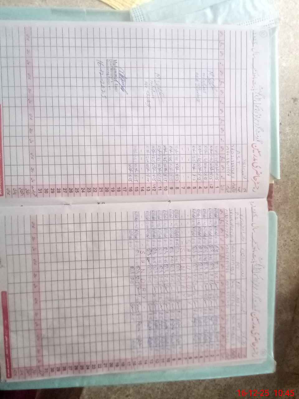| CNIC | Full Name | Designation | R/C | Absence During Last Calender Month |