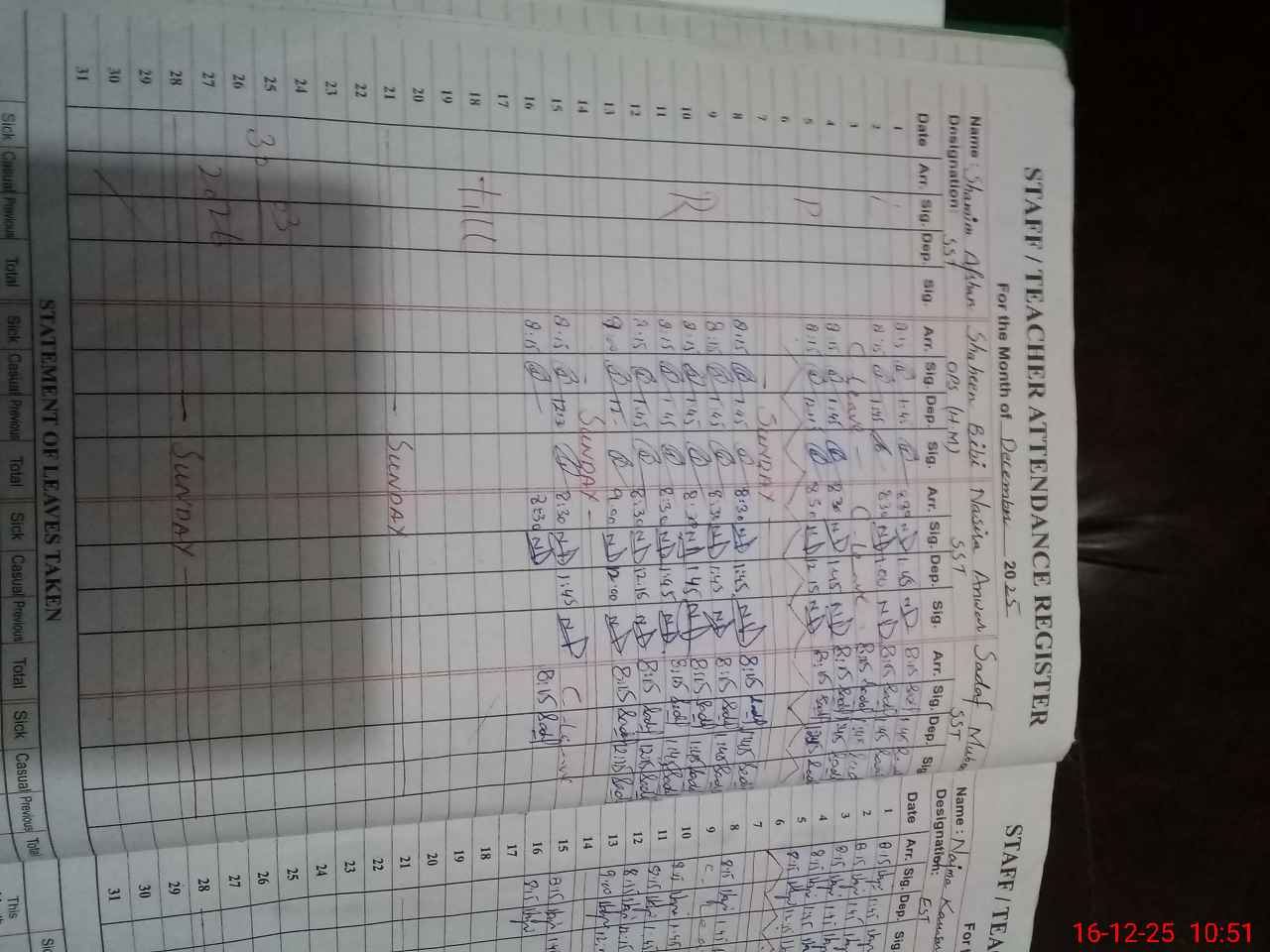 | CNIC | Full Name | Designation | R/C | Absence During Last Calender Month |