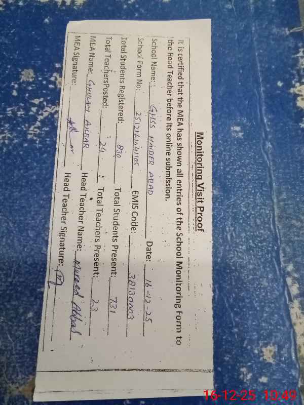 | EMIS Code: 38130003 | Name of School: GHSS HAIDER ABAD | |||