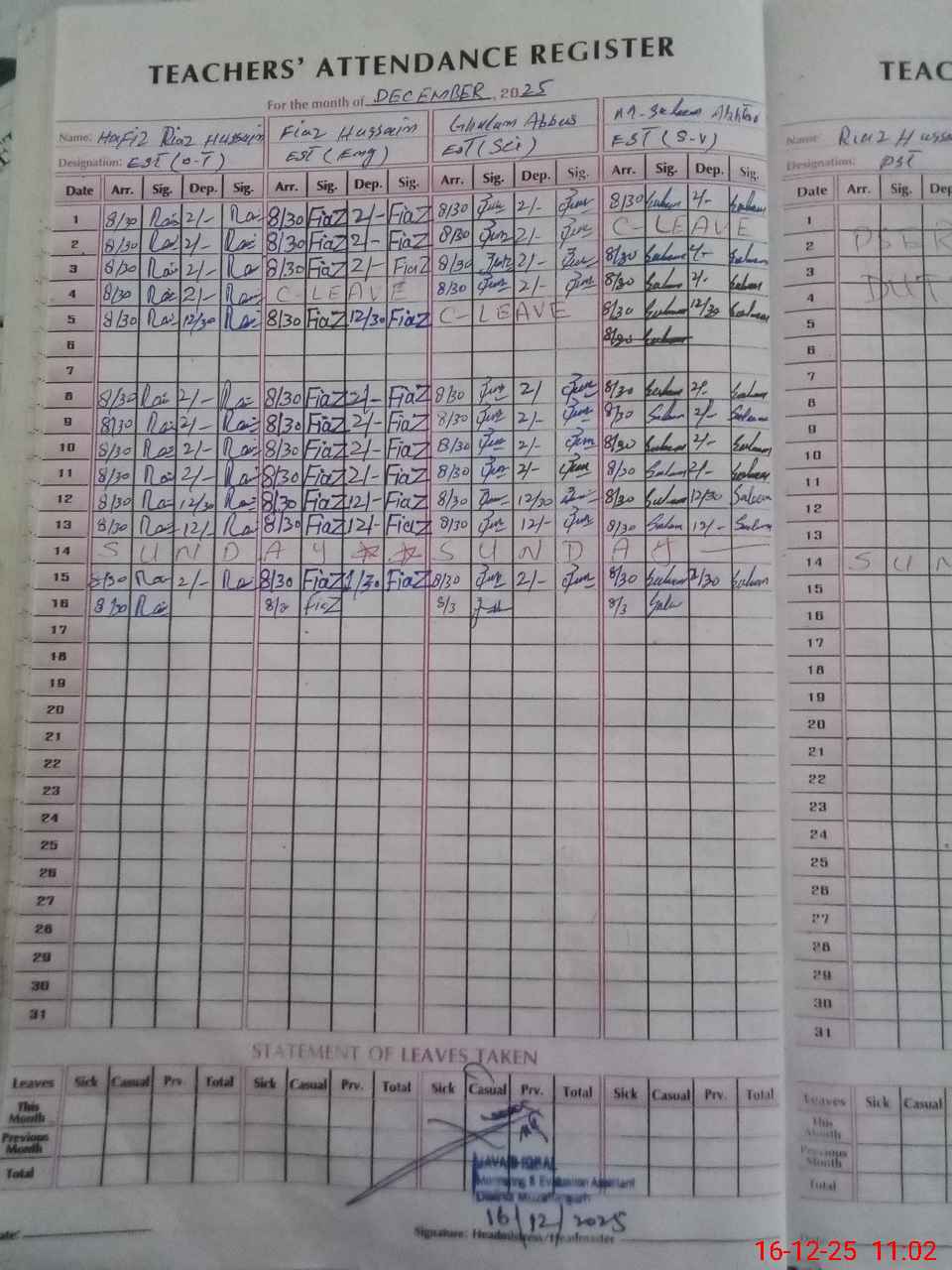 | Name: Ab**** Ra**** Designation: (School Headmaster's/Headmistress's) SST GEN Phone/Cell Number: 03**** |