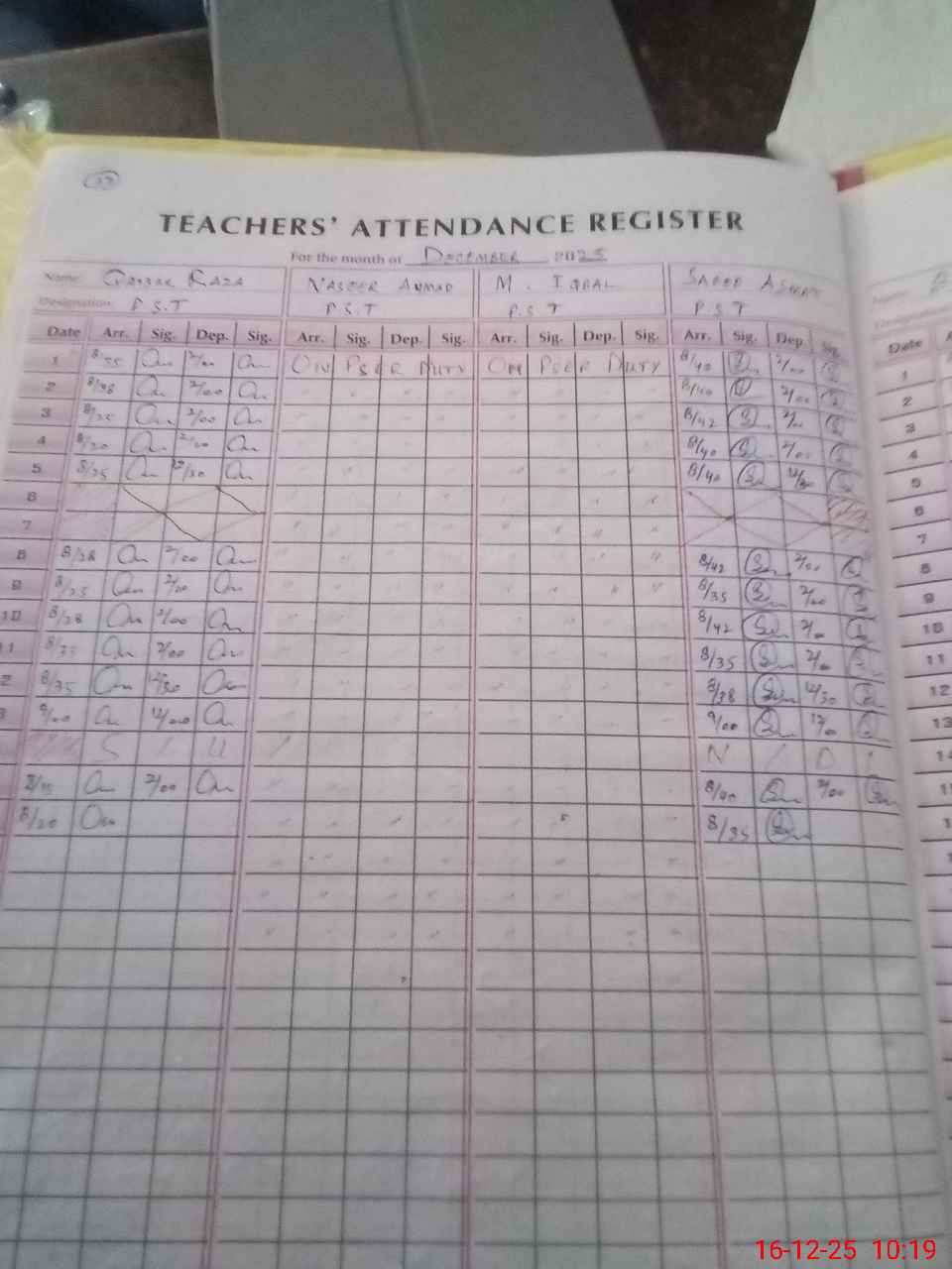 | Name: QA**** RA**** Designation: (School Headmaster's/Headmistress's) PST Phone/Cell Number: 03**** |