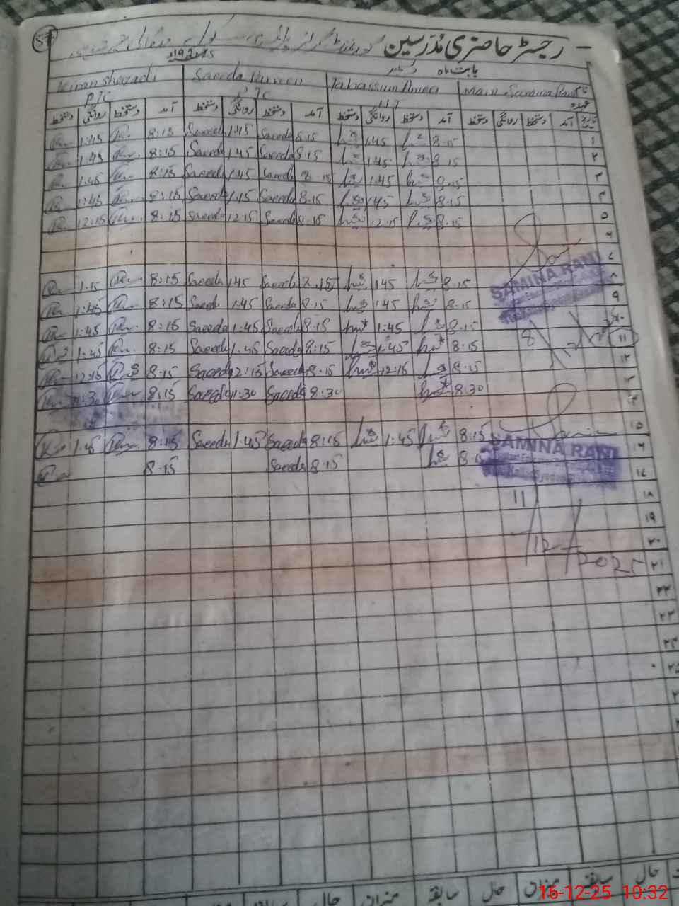 | CNIC | Full Name | Designation | R/C | Absence During Last Calender Month |
