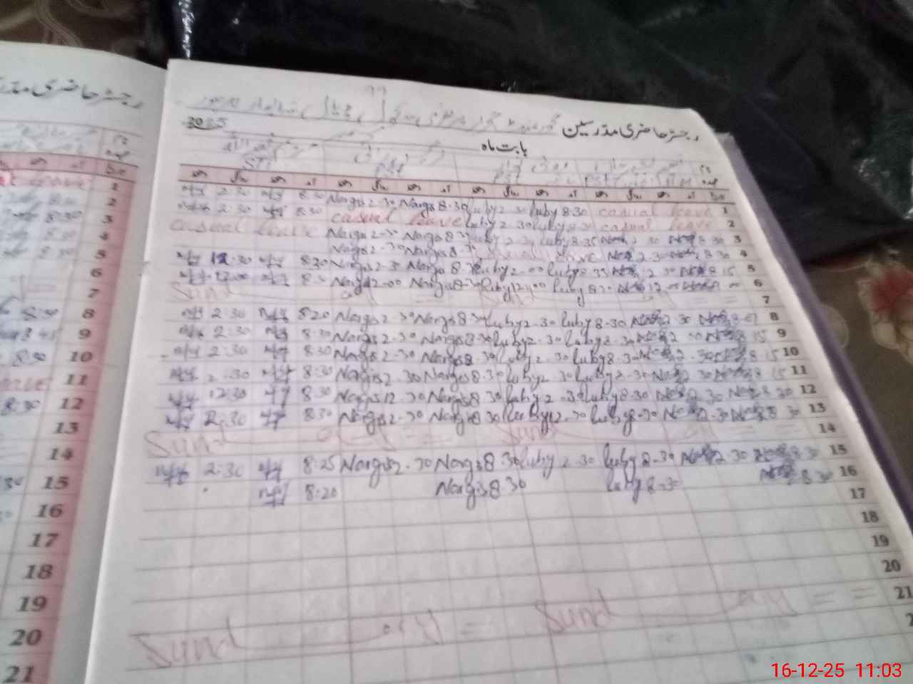 | CNIC | Full Name | Designation | R/C | Absence During Last Calender Month |