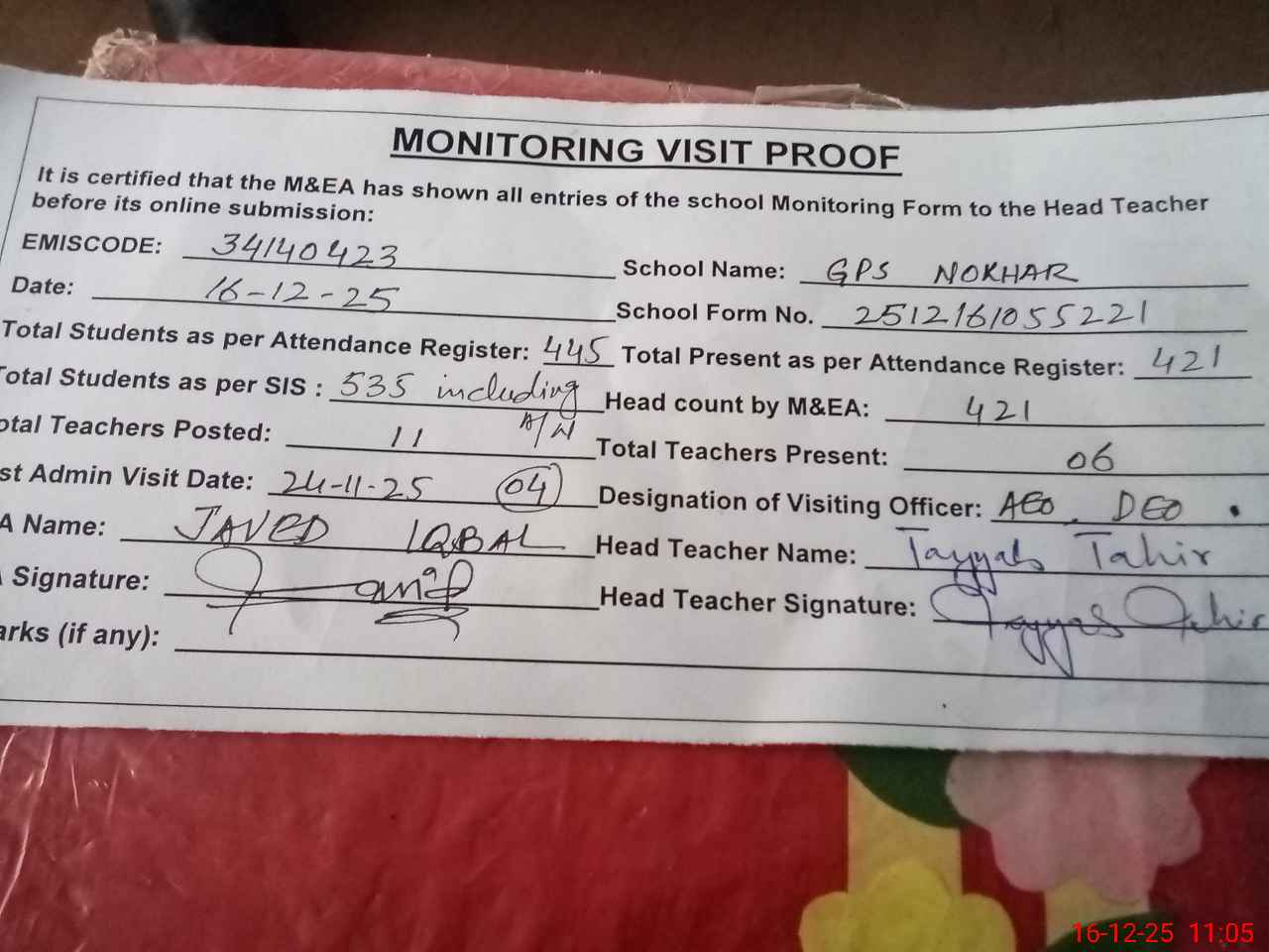| EMIS Code: 34140423 | Name of School: GPS NOKHAR | |||