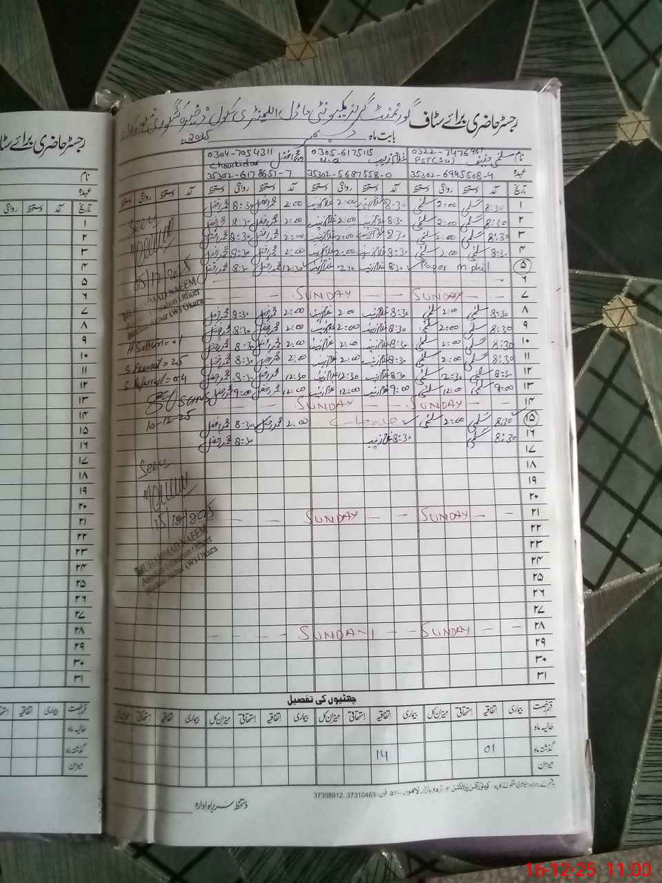 | Name: Uz**** Fa**** Designation: (School Headmaster's/Headmistress's) HEADMASTER Phone/Cell Number: 03**** |