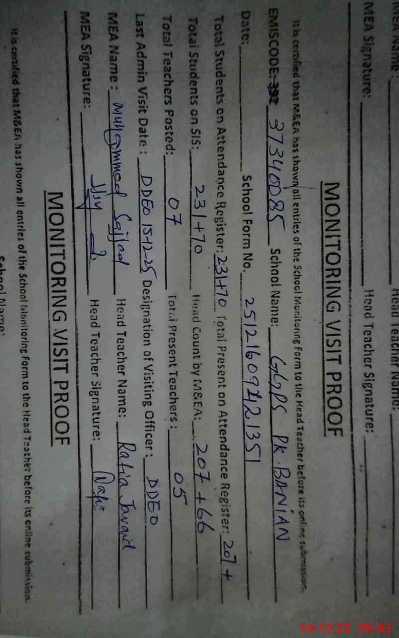| EMIS Code: 37340085 | Name of School: GGPS PIND KAMALA BANIAN | |||