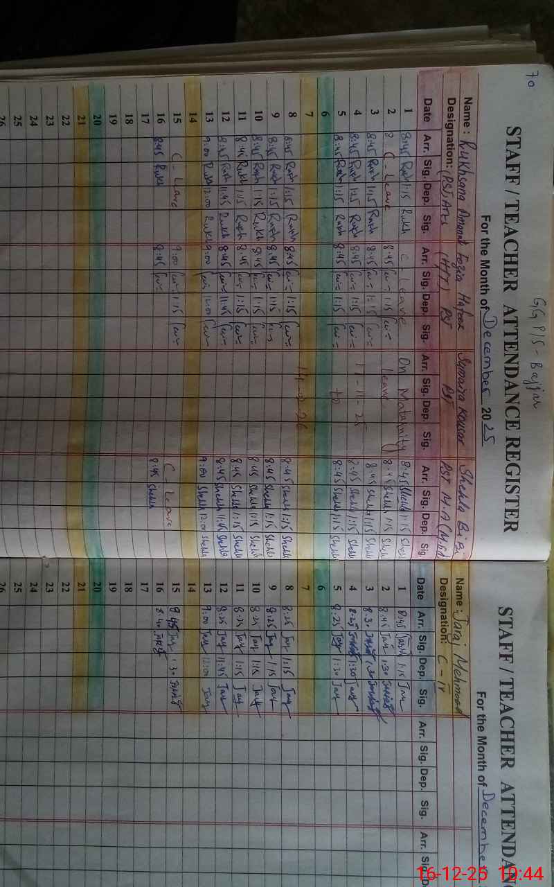 | 37**** | Su**** Ka**** | PST Science/Maths | Regular | 0 | 0 | 0 | 0 | 0 | 0 | 0 | 0 | 0 | Maternity |