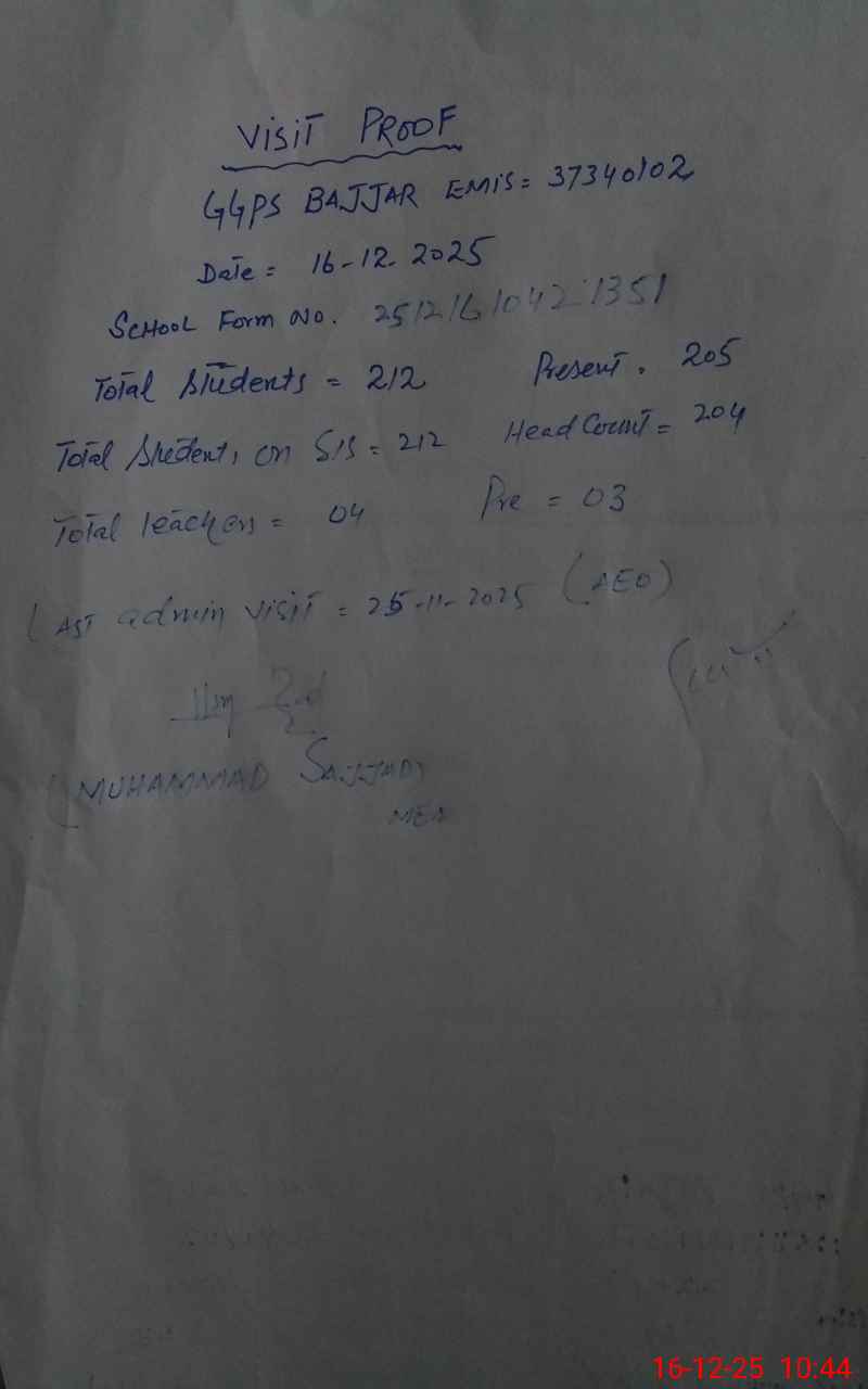 | EMIS Code: 37340102 | Name of School: GGPS BAJJAR | |||