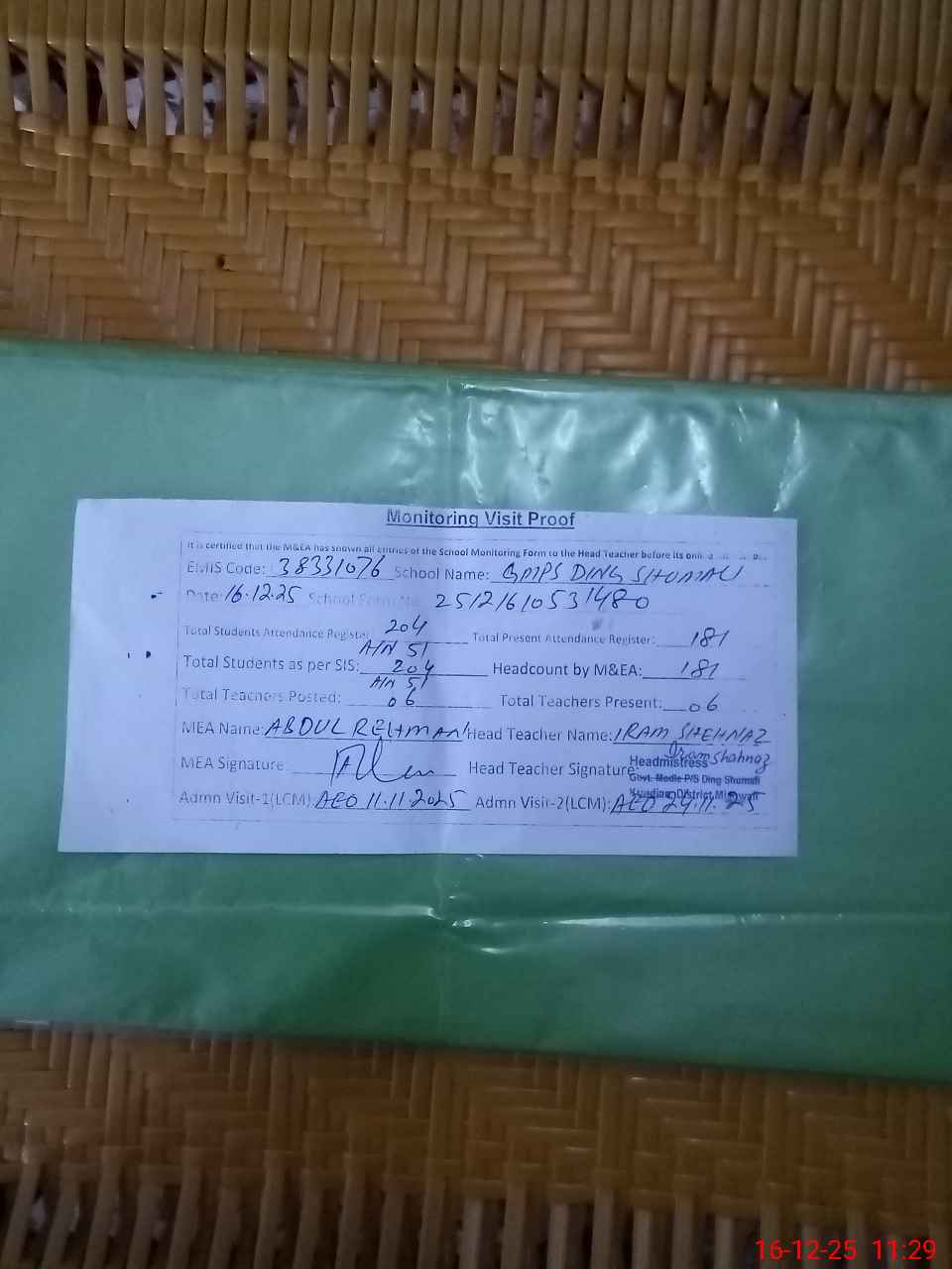 | EMIS Code: 38331076 | Name of School: GMPS DING SHUMALI | |||