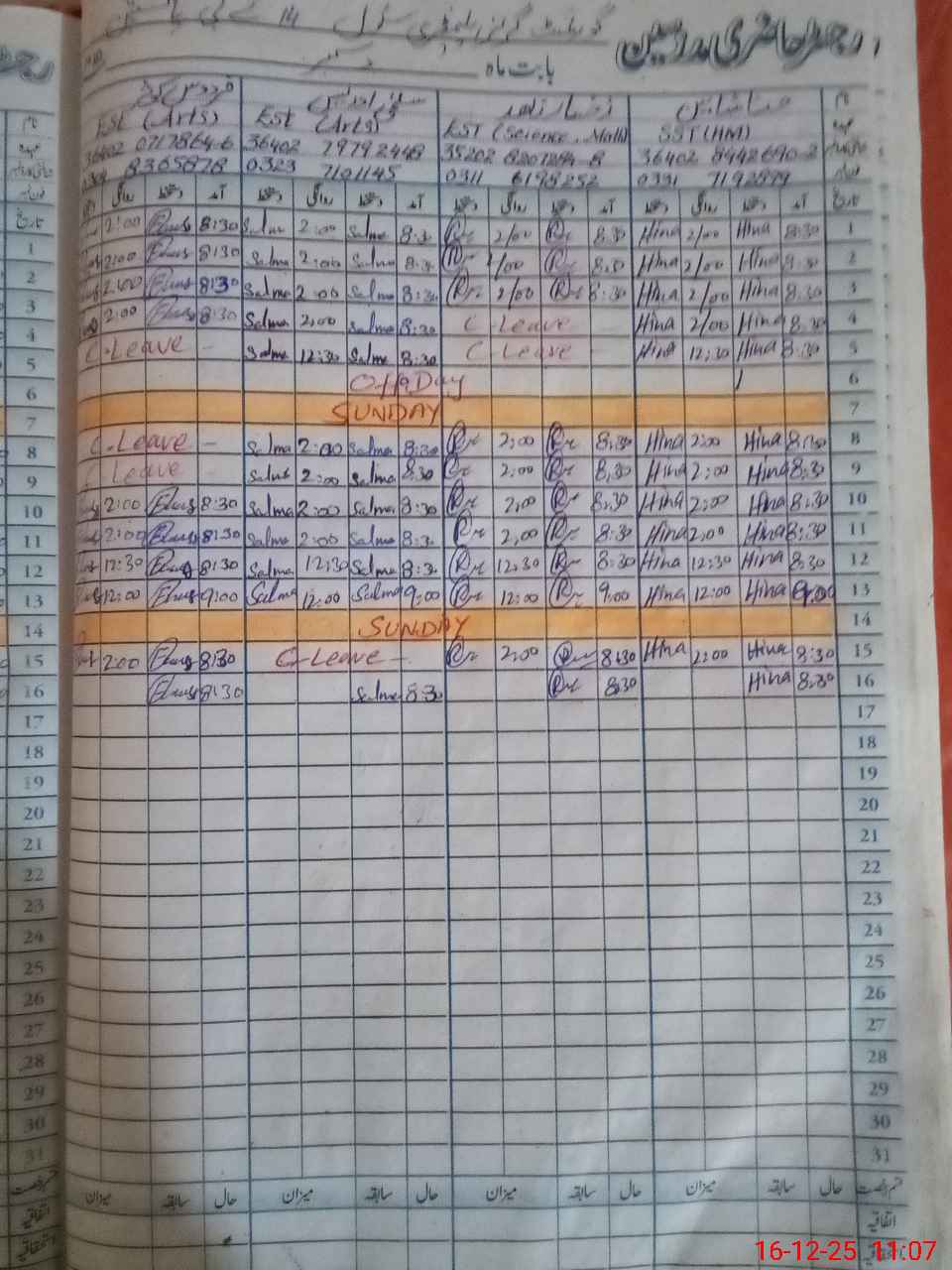 | Name: Hi**** Sh**** Designation: (School Headmaster's/Headmistress's) SST (Sci) Phone/Cell Number: 03**** |