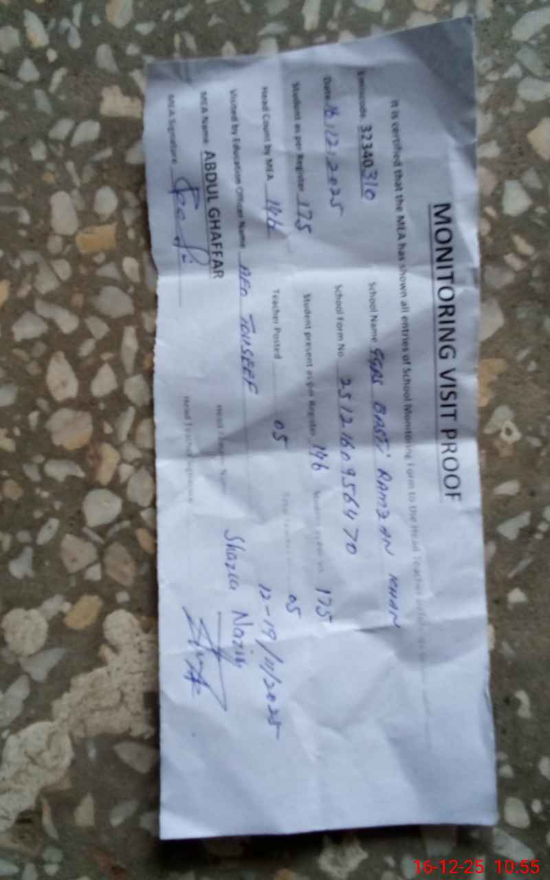 | Certified that this School was Inspected by the Undersigned MEA/DMO Today and the Information Stated Above is as Per Record. | |||||
