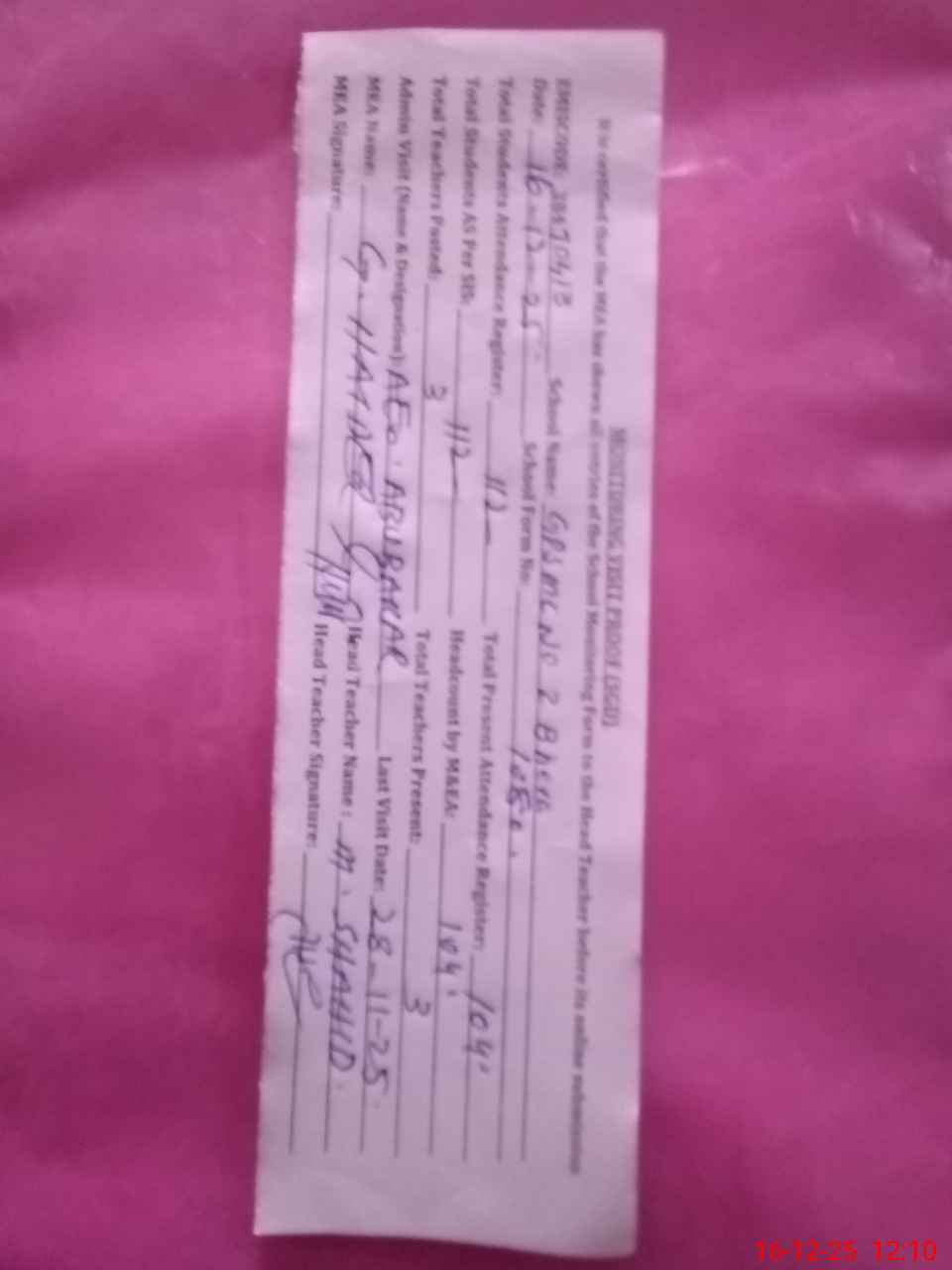 | Name: Mu**** Sh**** Designation: (School Headmaster's/Headmistress's) PST Phone/Cell Number: 03**** |