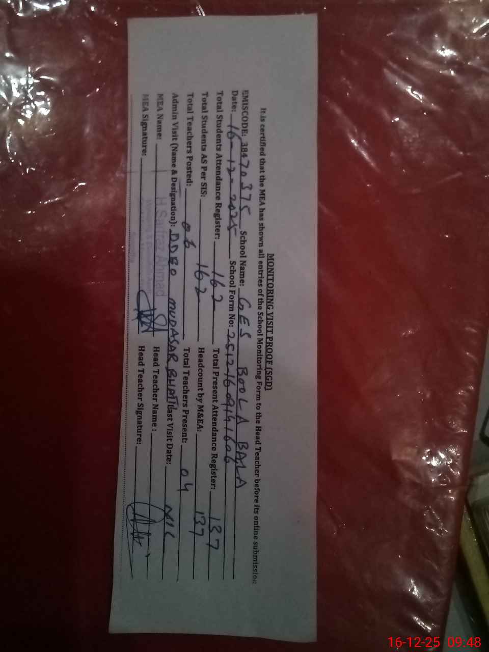 | Certified that this School was Inspected by the Undersigned MEA/DMO Today and the Information Stated Above is as Per Record. | |||||