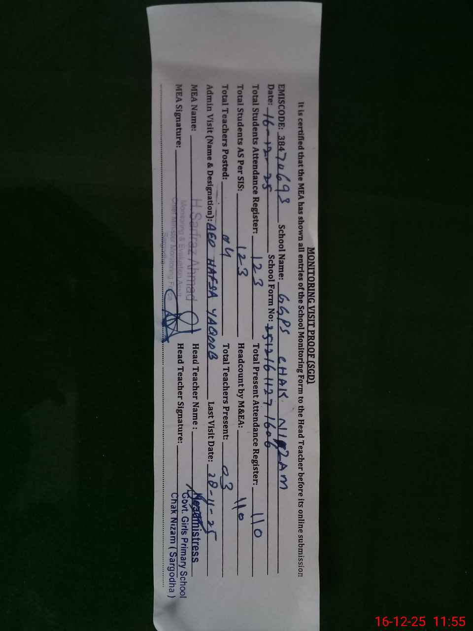 | EMIS Code: 38470693 | Name of School: GGPS CHAK NIZAM | |||