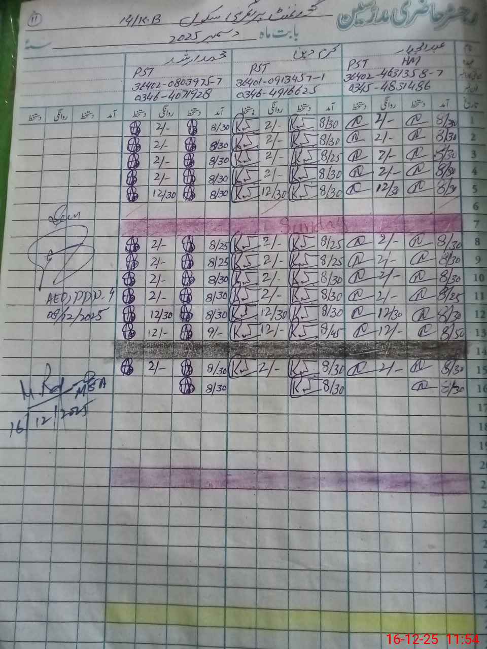 | Name: AB**** JA**** Designation: (School Headmaster's/Headmistress's) PST Phone/Cell Number: 03**** |