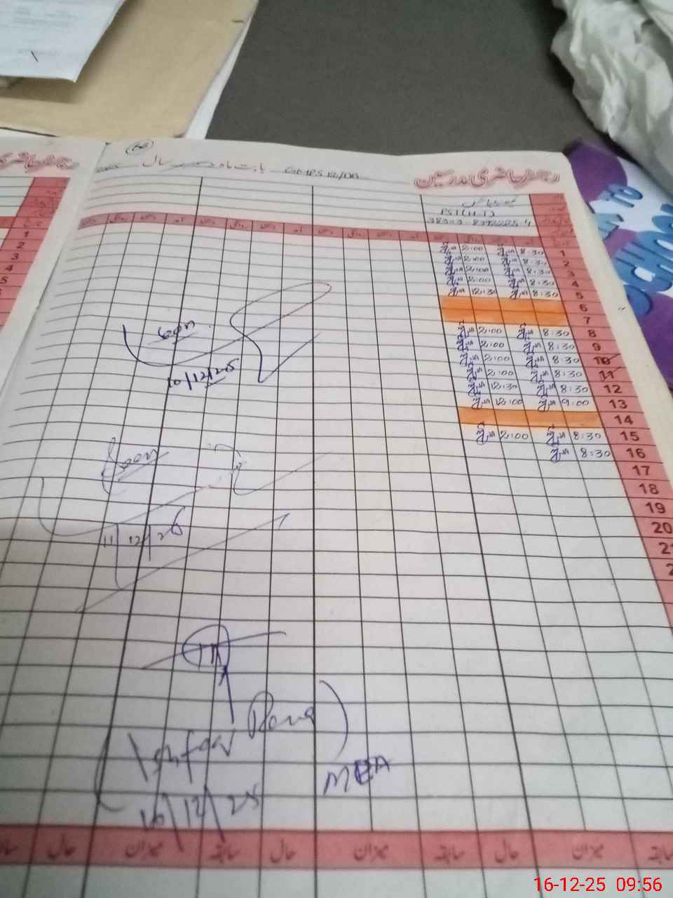 | CNIC | Full Name | Designation | R/C | Absence during last cal. month |