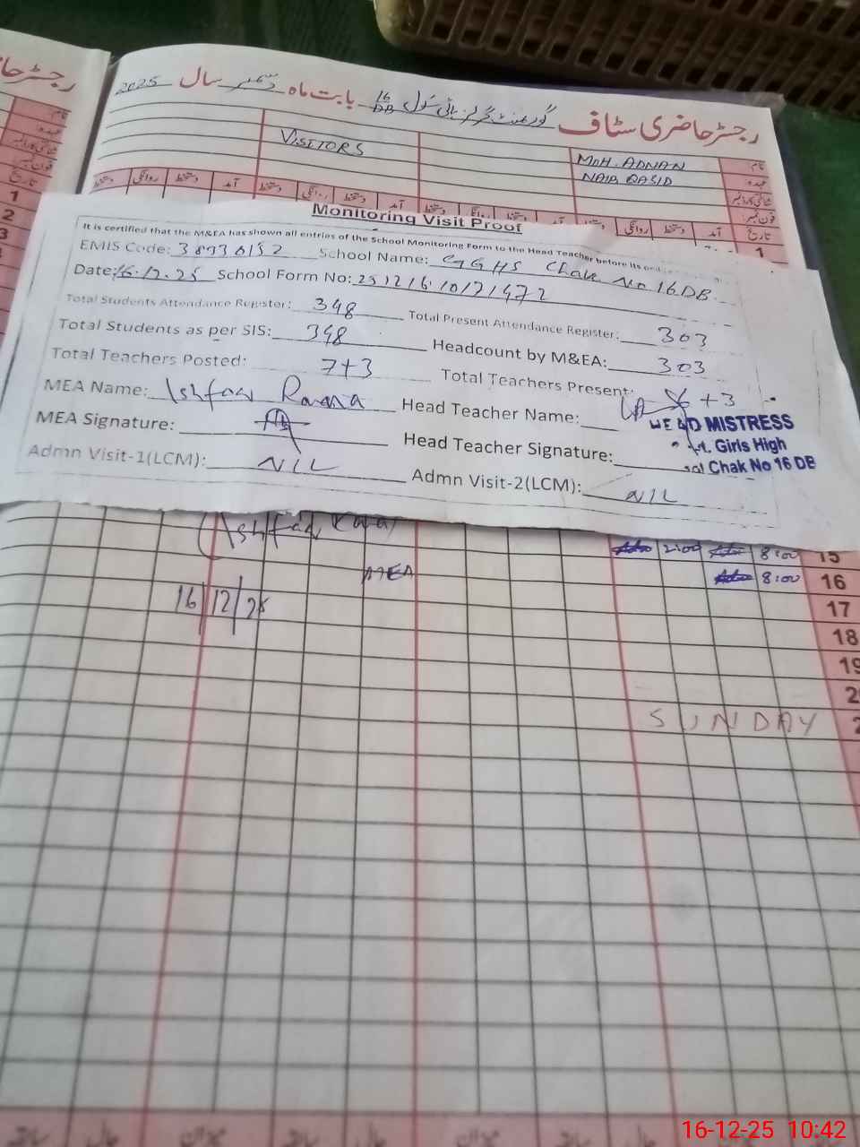 | EMIS Code: 38330152 | Name of School: GGHS CHAK NO. 16 DB | |||