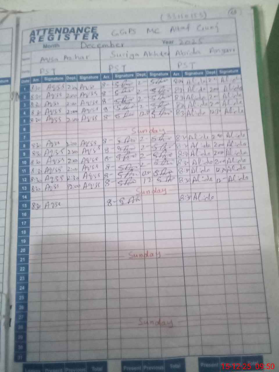 | Monitoring Date: 15-12-2025 | Start Time: 15-12-2025 09:48 AM | End Time: 15-12-2025 10:05 AM | Name of MEA: MU**** TA**** | |