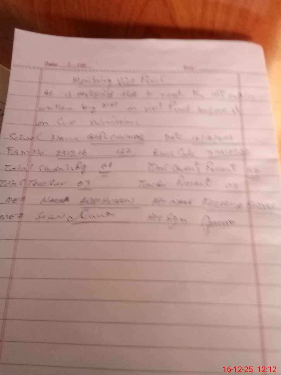 | Attendance Register | Head Teacher | MEA with School | Visit Proof |