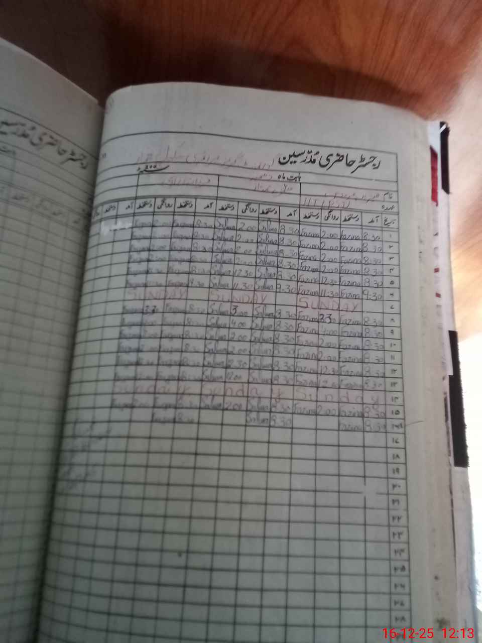 | CNIC | Full Name | Designation | R/C | Absence During Last Calender Month |