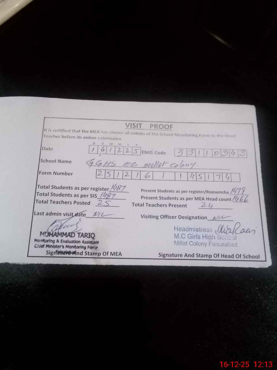 | EMIS Code: 33110343 | Name of School: GGHS MC MILLAT COLONY | |||