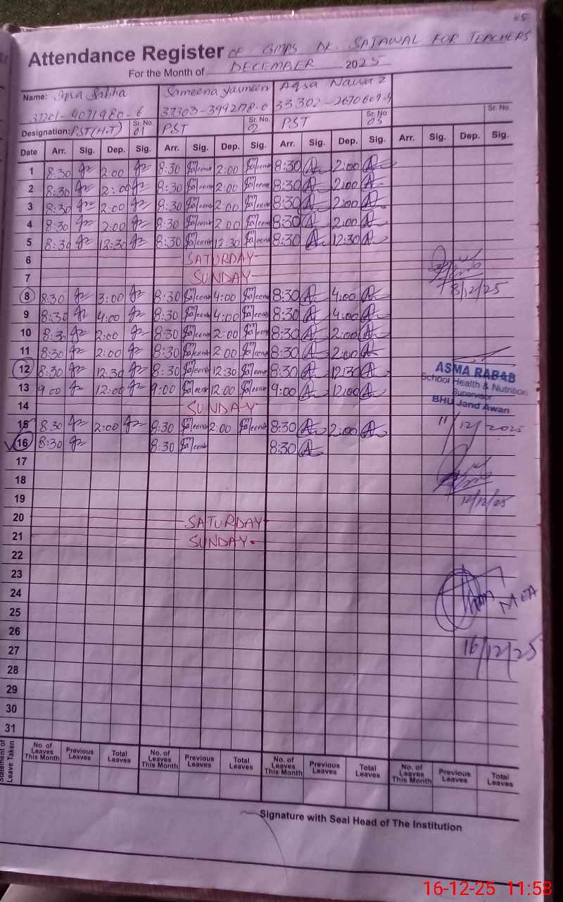 | Name: Iq**** Sa**** Designation: (School Headmaster's/Headmistress's) HEADMISTRESS Phone/Cell Number: 03**** |