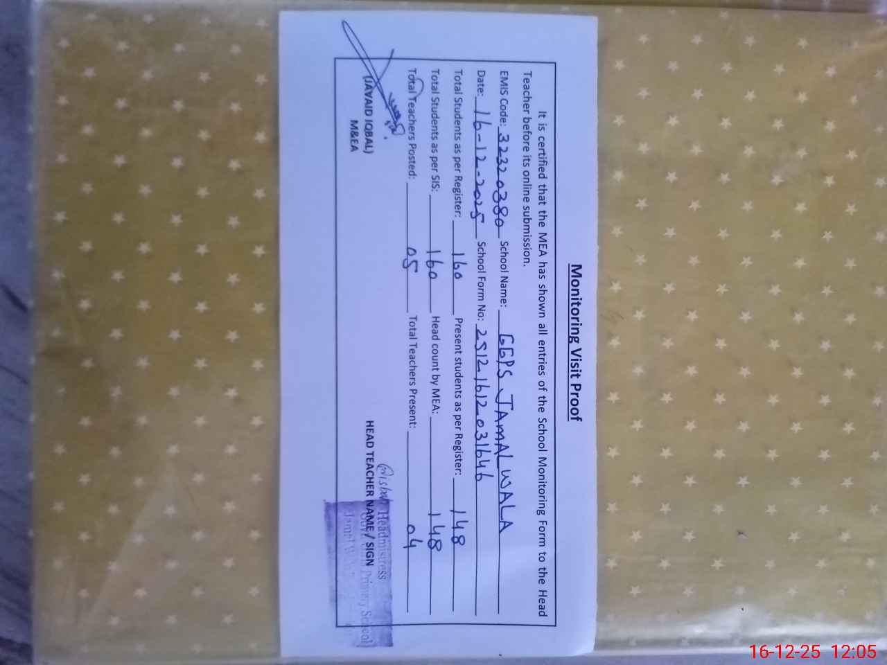 | EMIS Code: 32320380 | Name of School: GGPS JAMAL WALA | |||