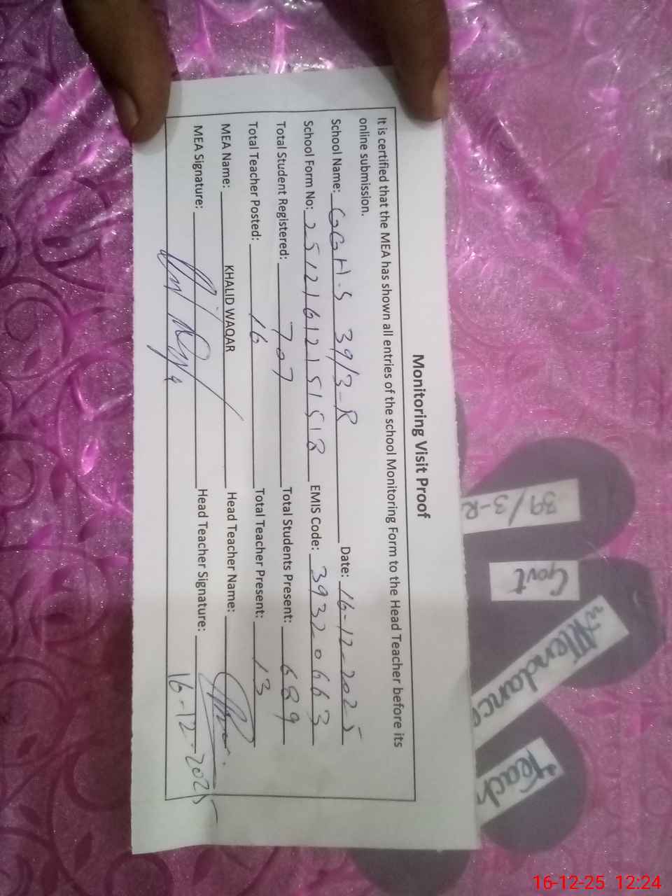 | EMIS Code: 39320663 | Name of School: GGHS CHAK NO. 39/3-R | |||