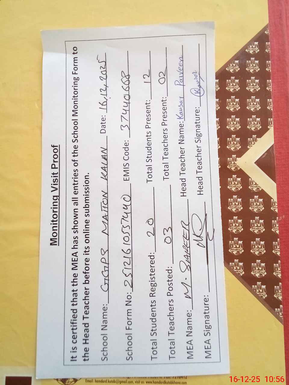 | EMIS Code: 37440668 | Name of School: GGPS MOTTON KALAN | |||