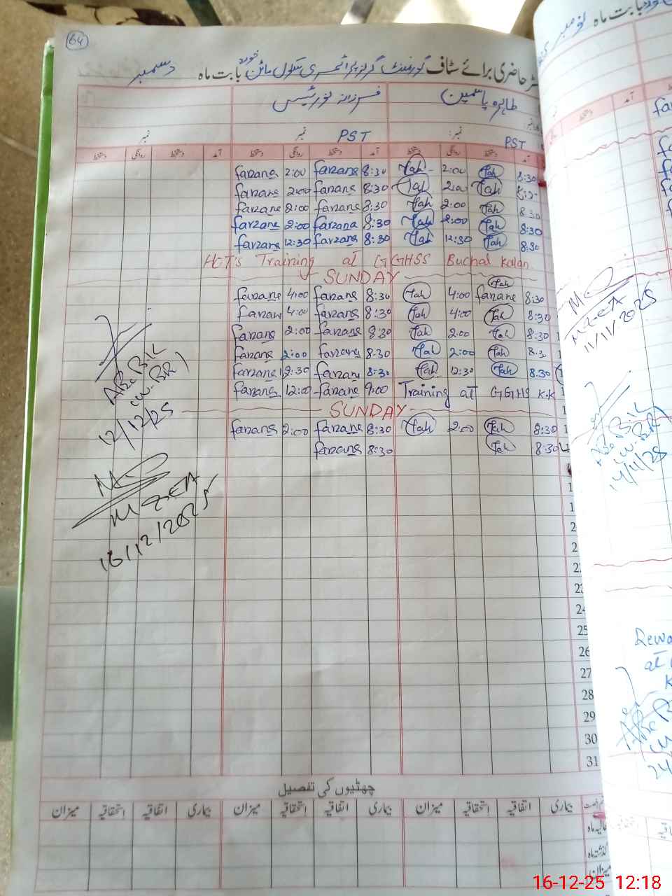 | CNIC | Full Name | Designation | R/C | Absence During Last Calender Month |