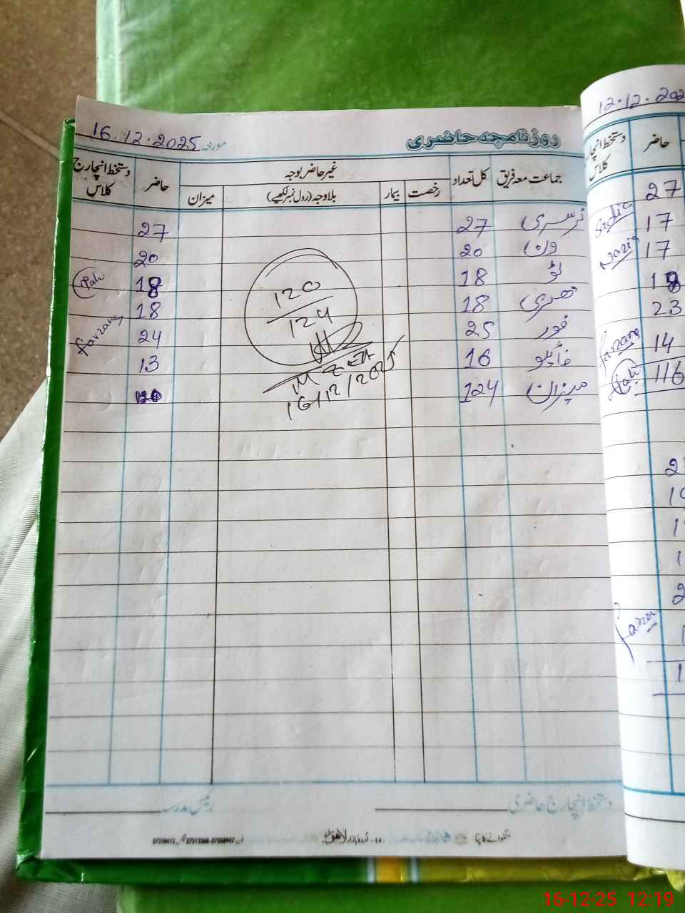 | Total Students Present | 0 | 0 | 20 | 18 | 18 | 24 | 13 | 120 | ||||||||
